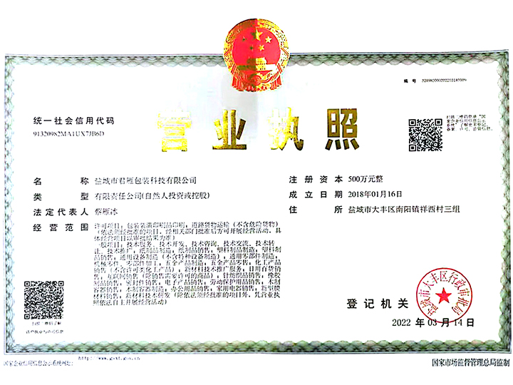 企業(yè)資質鹽城市君雁包裝科技有限公司,始創(chuàng)于2021年,公司面積20000平方米。公司位于中國鹽城大豐區(qū)南陽鎮(zhèn)祥西村三組,是一家集研發(fā)、生產(chǎn)、銷售為一體的包裝材料企業(yè),產(chǎn)品涉及:外包裝紙箱,防水紙箱,涂蠟紙箱,浸蠟紙箱,冷柜紙箱,木包裝箱,免熏蒸木包裝箱,木托盤,EPE珍珠棉,珍珠棉袋,EVA板材,EVA大板,包裝海綿等包裝材料。包裝設計制造符合API、ANSI、ASTM、NACE、ISO、EN、BS、DIN、MSS SP等國際標準的要求,在鹽城以及周邊城市的市場上有良好的評價。公司擁有先進的生產(chǎn)設備,嚴格的管理制度和高素質的人才團隊,保證了高質量的產(chǎn)品和良好的服務,同時我司還可以根據(jù)客戶特殊工況需求,提供全套包裝技術解決方案。